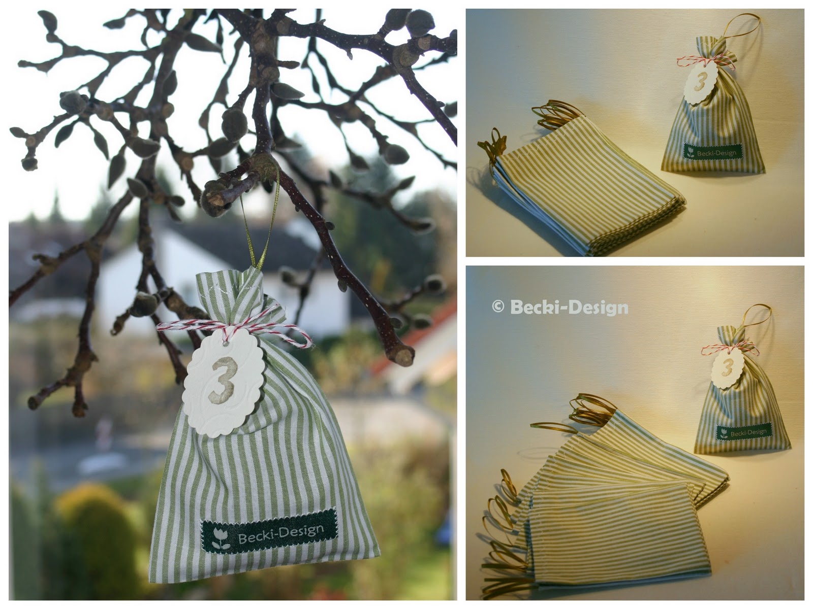 In den letzten Wochen habe ich fleißig über 500 kleine Beutelchen genäht. Mit und ohne Applikationen, ein- und mehrfarbig, damit es nicht langweilig wurde. Netterweise hat mir mein Mann die Zahlenschildchen ausgestanzt und mit Zahlen ganz liebevoll bestempelt. Das war eine echt schöne “Adventsbastelei”.