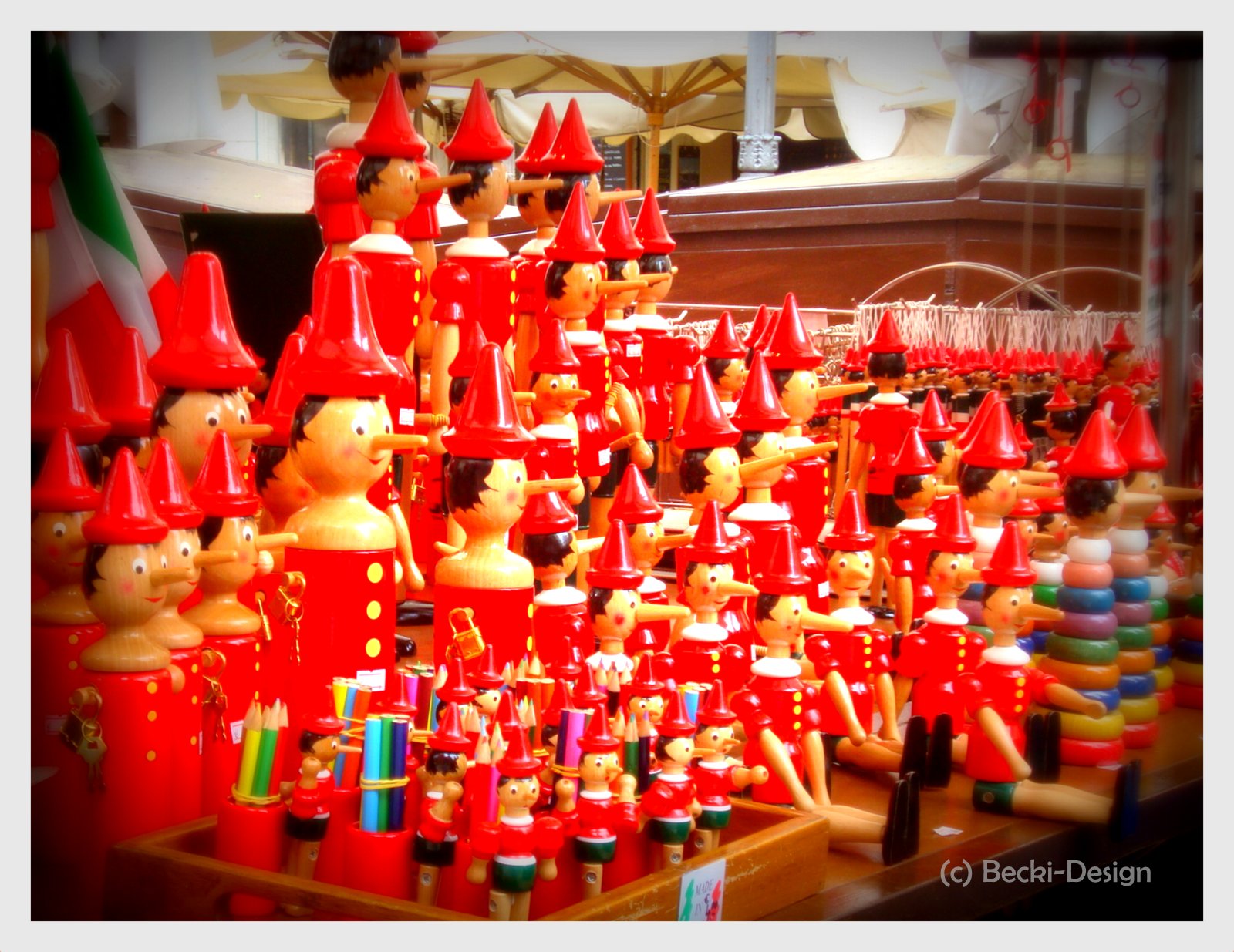 In Verona haben wir diese vielen Pinochios zu Gesicht bekommen. Da meine Mutter für die Enkelkinder auch immer noch einen rumstehen hat, musste ich doch ein Foto machen. Die sind ja schon nett, oder? Wie wäre es mal mit einer Pinochioapplikation?