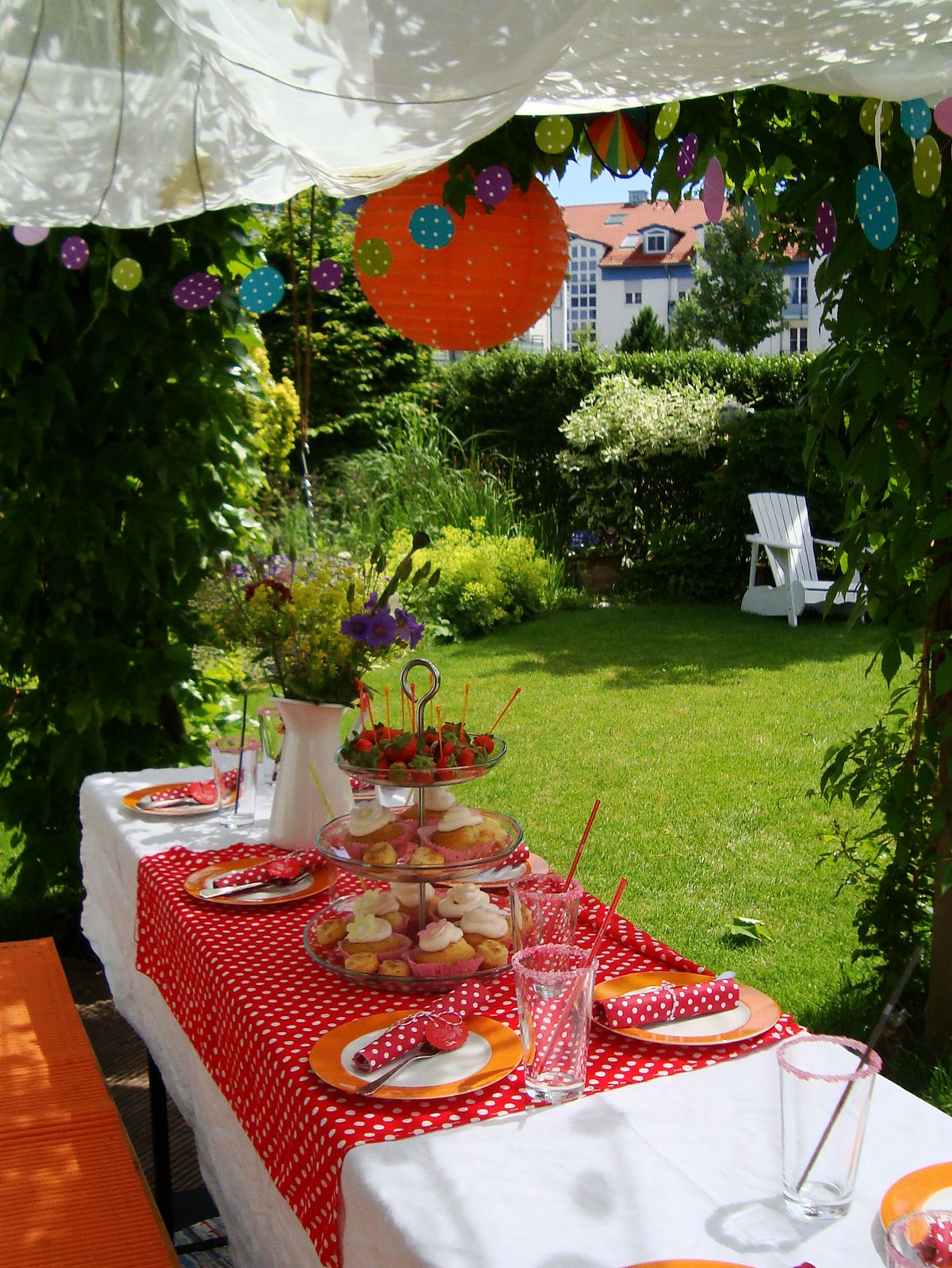 Heute zeige ich Euch, wie es nach den Einladungen bei der Feier meiner Großen zuging. Wie gesagt, ich lasse mich ja gerne von der Bloggergemeinde animieren und so hat allein der Name Pünktchenglück zu vielen Pünktchen geführt. (Auf diesem Wege schöne Grüße an Dana, deren Blog mir immer Spaß macht). Pünktchen haben ja auch was von guter Laune und die hatten auch alle kleinen Gäste am heutigen Tage, wo es doch endlich wieder Wasserspritze und Planschwetter war.
