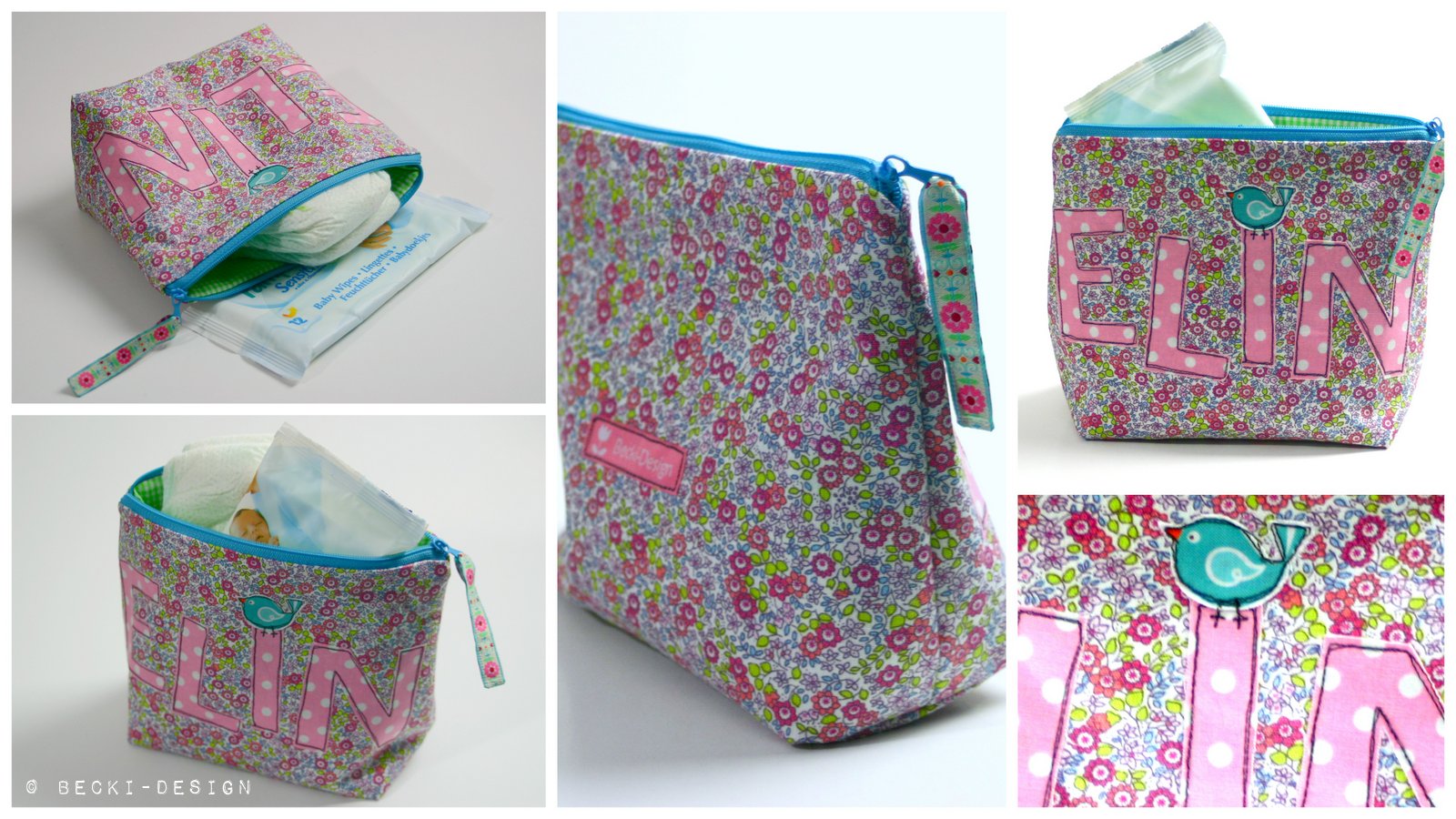 sagte ich es bereits? Ja, ich glaube schon. Ich finde es besonders schön, wenn mir Kundschaft total freie Hand lässt. Da kann ich so richtig was neues “aushecken”. Und das habe ich bei dieser Tasche voll ausgenutzt. Der Stoff ist ziemlich fest und war eigentlich als Tischdecke vom großen Schwedenkaufhaus vorgesehen. Ich habe diese kurzerhand einfach angeschnipselt… Ich finde die Tasche zuckersüß! Ich hoffe den frisch gebackenen Eltern gefällt sie auch.