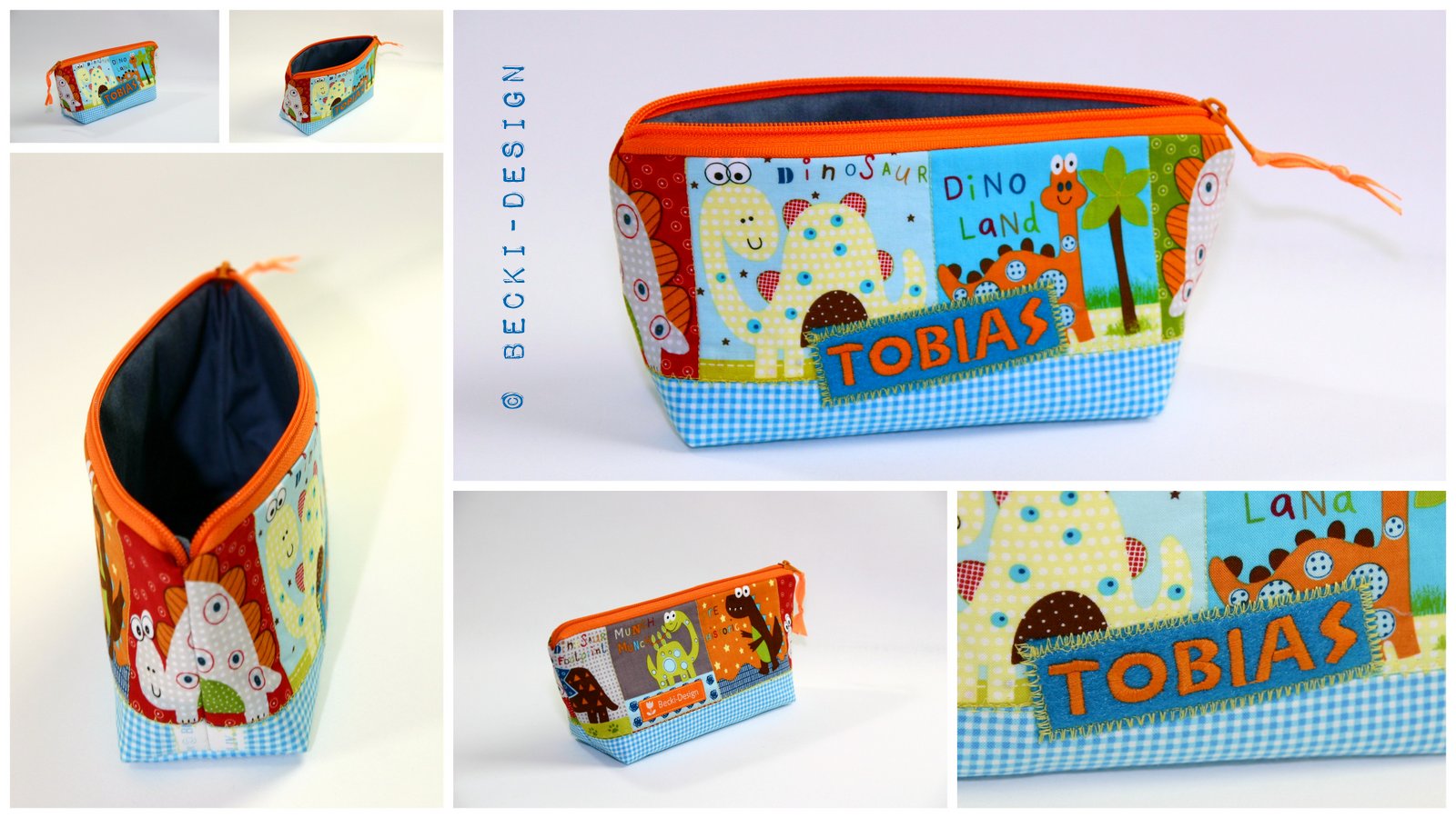 Und dann ist meine Kleine zum Kindergeburtstag eingeladen. Da durfte sie wieder bei der Auswahl der Stoffe mitreden. Und ich finde, dass sie das sehr gut gemacht hat. Und wenn Tobias mal woanders übernachtet, würde in das Täschchen auch Zahnbürste und Zahnpasta reinpassen. Ich habe zum ersten mal einen (natürlich neuen) Putzlappen als Vlies eingearbeitet. Es ist sehr viel stabiler als das normale Vlies. Ich hoffe die Stifte oder was auch immer drin transportiert wird, wird lange halten.