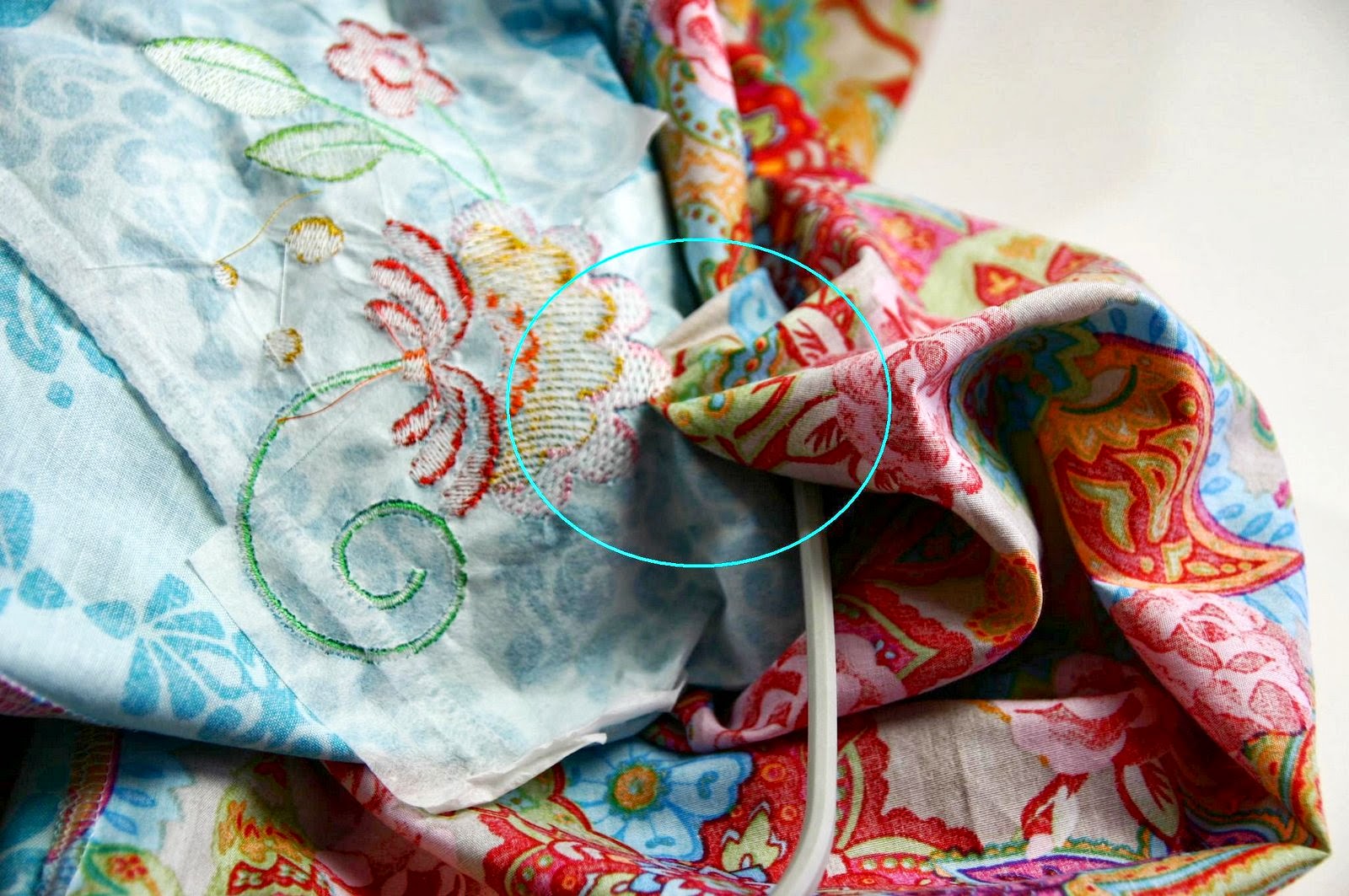 Och, ich denke, das ist jedem schon mal passiert. Mir nicht mit der Stickmaschine (hab ja keine), aber mit Overlock und anderer Maschine… ist nicht ganz so tragisch, aber trotzdem Fummelei.