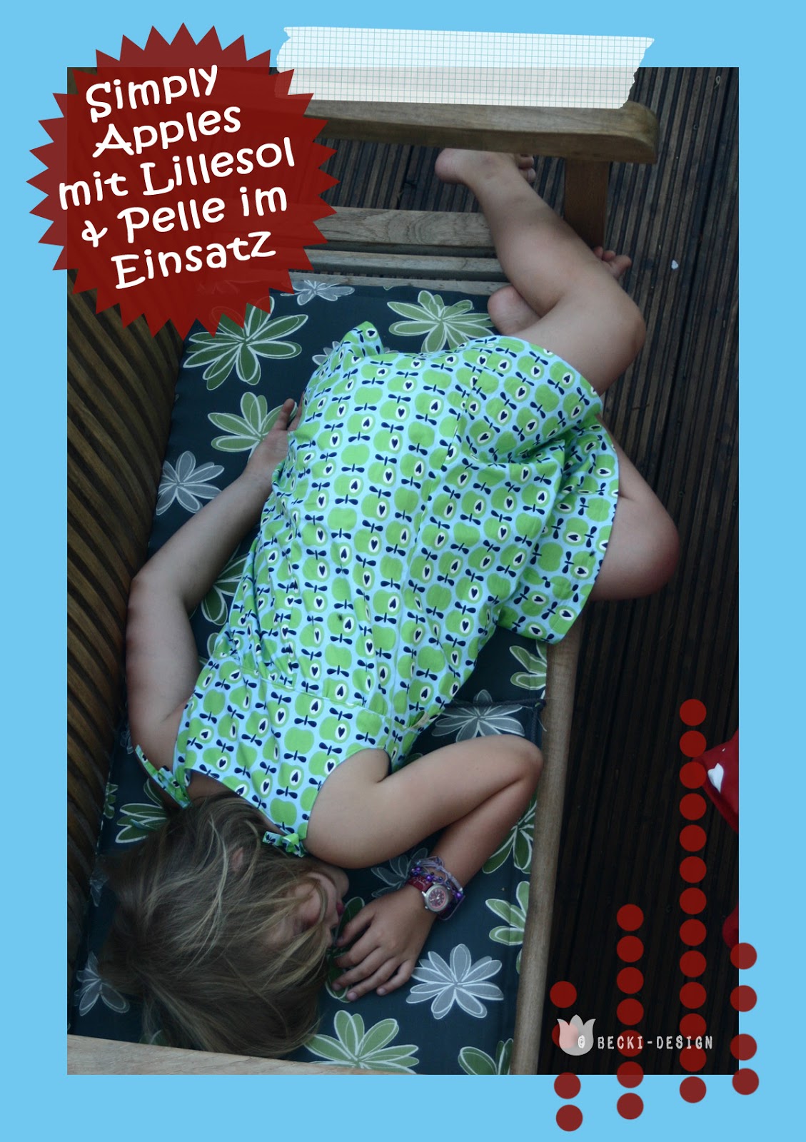 Den Äpfelchenstoff habe ich noch gar nicht so lange im Regal. Mir war aber klar, dass daraus ein Kleid für die Große entstehen muss. Und da kam mir der Schnitt von Julia grad recht. Ganz fix hatte ich zwei Kleidchen genäht. Das zweite werde ich Euch demnächst zeigen.