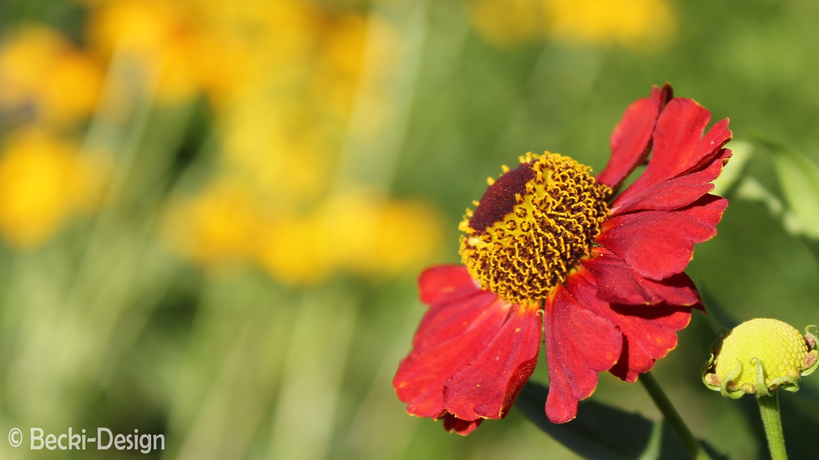 Diese Sonnenbraut lat. Helenium lebt nun schon ein paar Jahre in unserem Garten und verzeiht uns auch mal, wenn wir sie nicht gießen. Sie mag allerdings lieber feuchten als trockenen Boden.