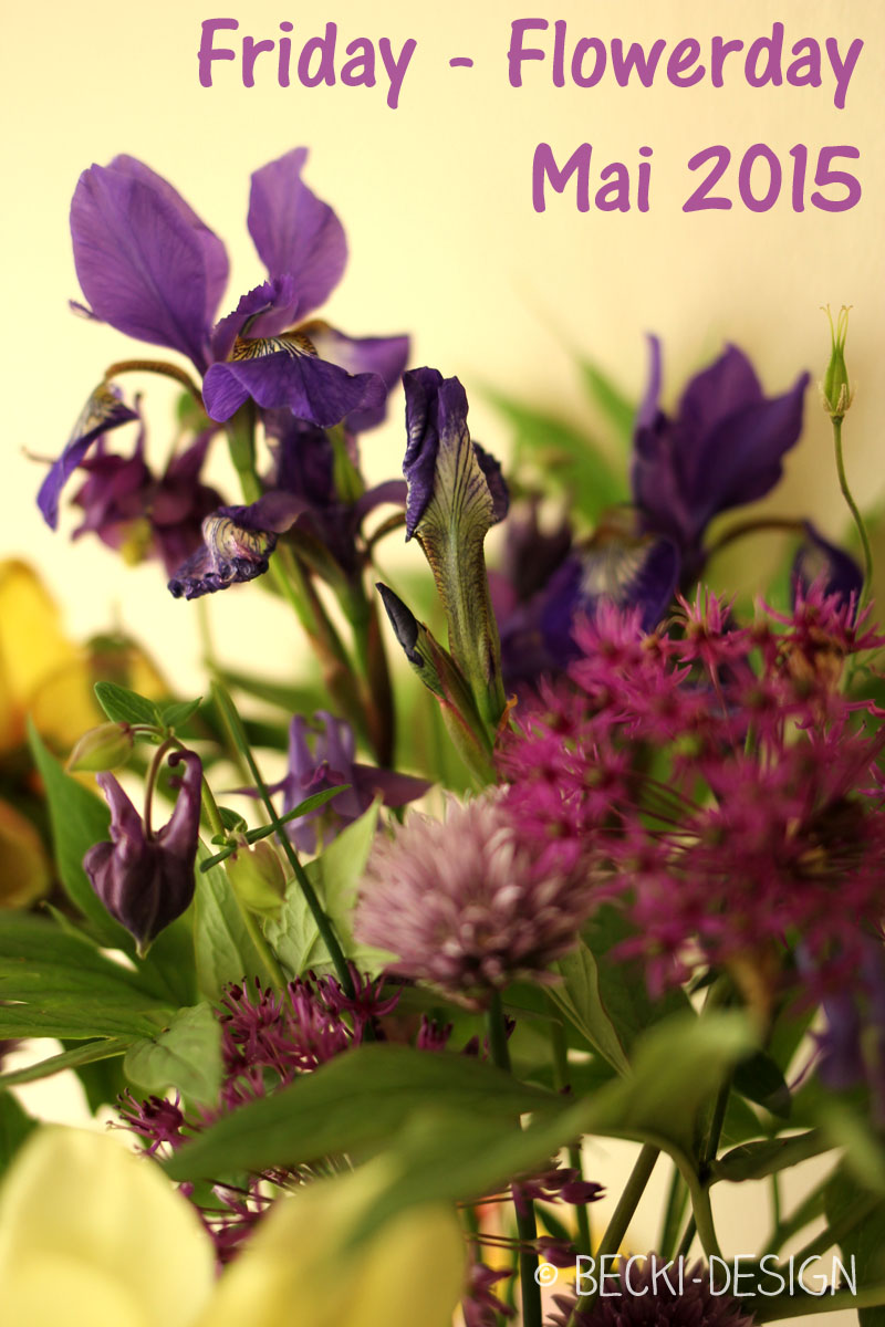 Jeah! Ich kann wieder in den Garten gehen und das “Kraut” für meine Blumenvase dort pflücken. Das ist für mich eine der tollsten Eigenschaften des Gartens. Ich habe meinen eigenen Blumenladen, der mal mehr und mal weniger gefüllt ist. Im Moment überwiegen die lilafarbenen Gewächse wie Allium, Iris und Schnittlauch. Naja, warum auch nicht Schnittlauch. Der sieht doch auch hübsch aus?! Dazu gesellt sich heute die gelbe Pfingstrose. Sie wächst an einem riesig großem Busch – also finde ich. Der Busch ist inzwischen gut 1,70 m hoch und überrascht mich jedes Jahr. So richtig schön ist er nicht. Die Blüten hängen da so drin, wie zerknüllte Krepppapierblumen. Ich merke schon, ich muss Euch da mal ein Foto von machen. In der Vase gefällt Frau Pfingstrose dagegen sehr. Außerdem duftet sie noch dazu…