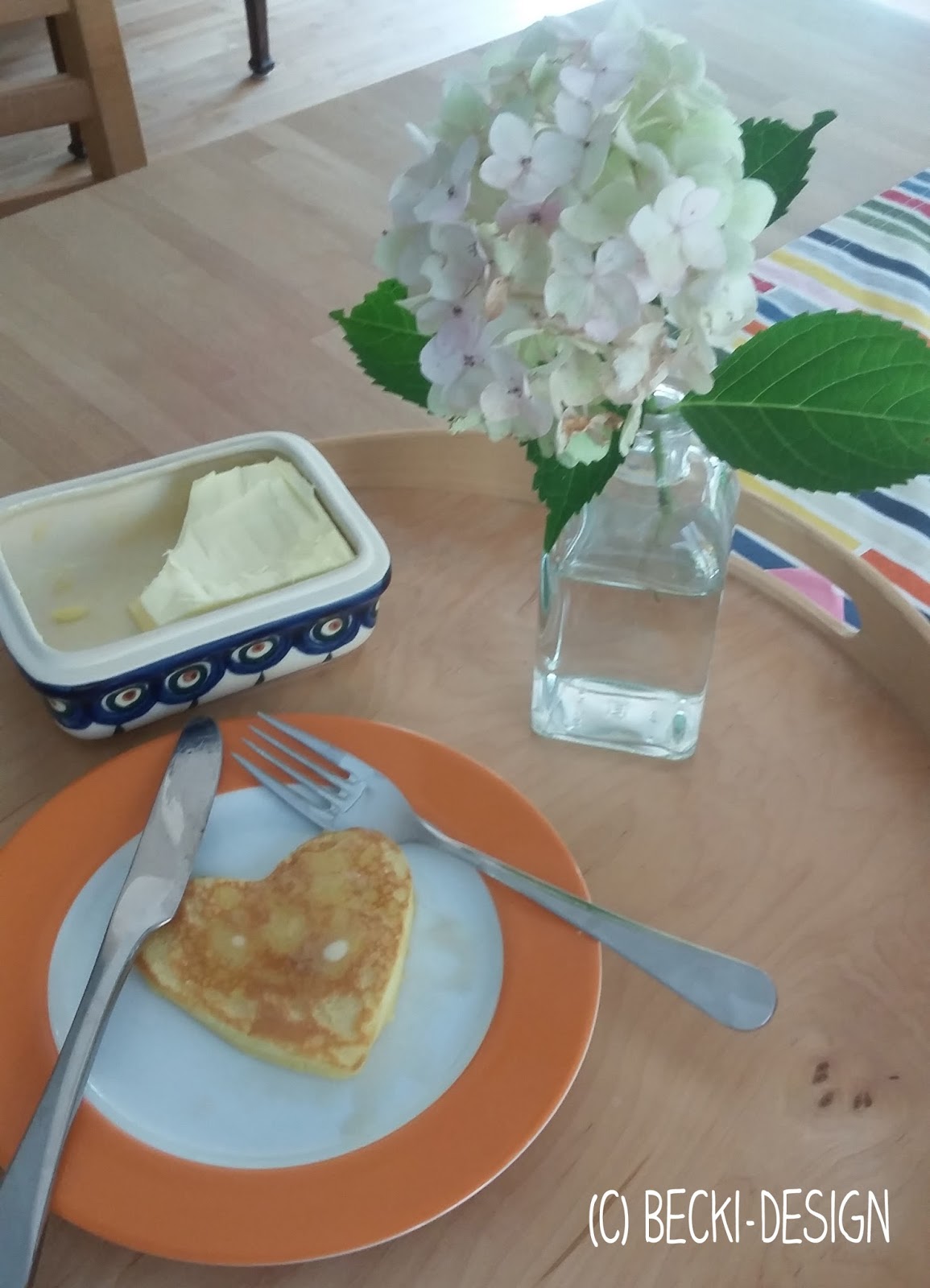 Wir haben heute lange geschlafen und die Große wollte unbedingt Pfannkuchen machen. Gesagt, getan. Dann bitte aber noch mit schönem Muster, dann schmeckt es noch mal so gut. Stimmt!