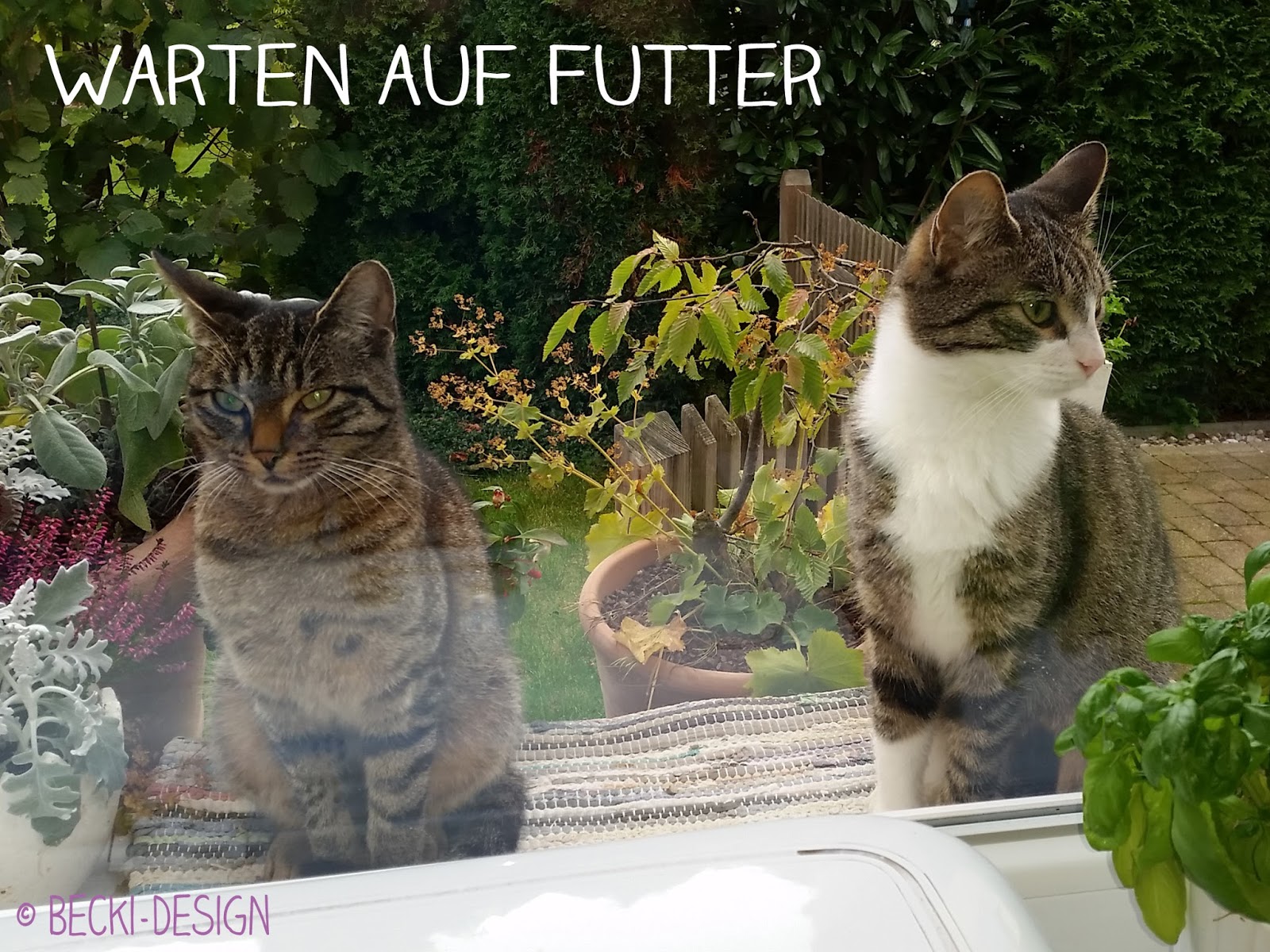 Zwischendurch schleichen sie also morgens hin und her oder Tünnes macht sich ungefähr einen Meter am Fenster lang um auf sich aufmerksam zu machen. Kann man sich das vorstellen? Also er steht auf den Hinterpfoten auf der Fensterbank und die Vorderpfoten kommen am Fenster fast am Rolladen an. Vielleicht schaffe ich es irgendwann mal schnell genug ein Foto zu machen….