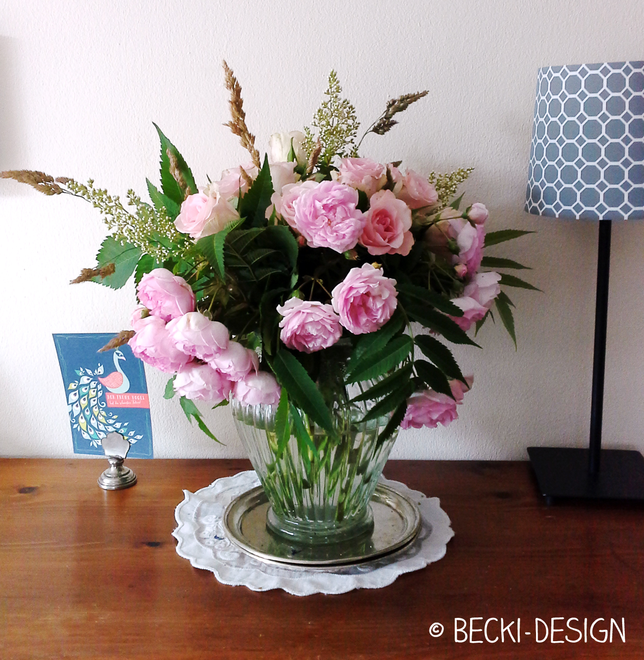 Jetzt waren die Kletterrosen so pickselig, dass ein arrangieren schier unmöglich war. Drum sehen die Blumen heute etwas zusammen gestöpselt aus. 😉