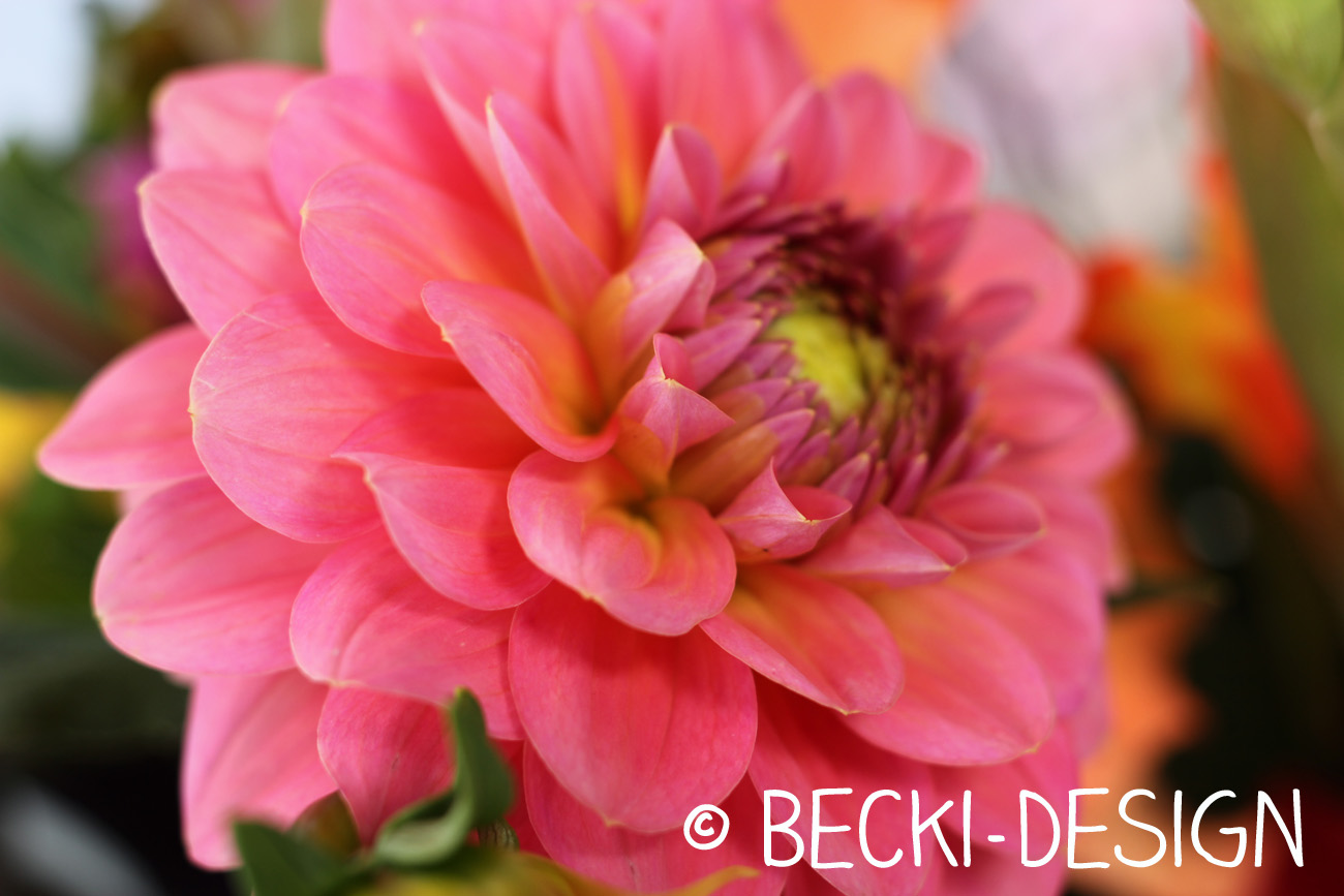 Das Gesamtarrangement erfreut uns in fröhlich bunten Farben. Damit geht es zu Helga, die die Blümelein sammelt. Leider legt der Sonnenschein heute ein Pause ein. Morgen soll es wieder schön werden.