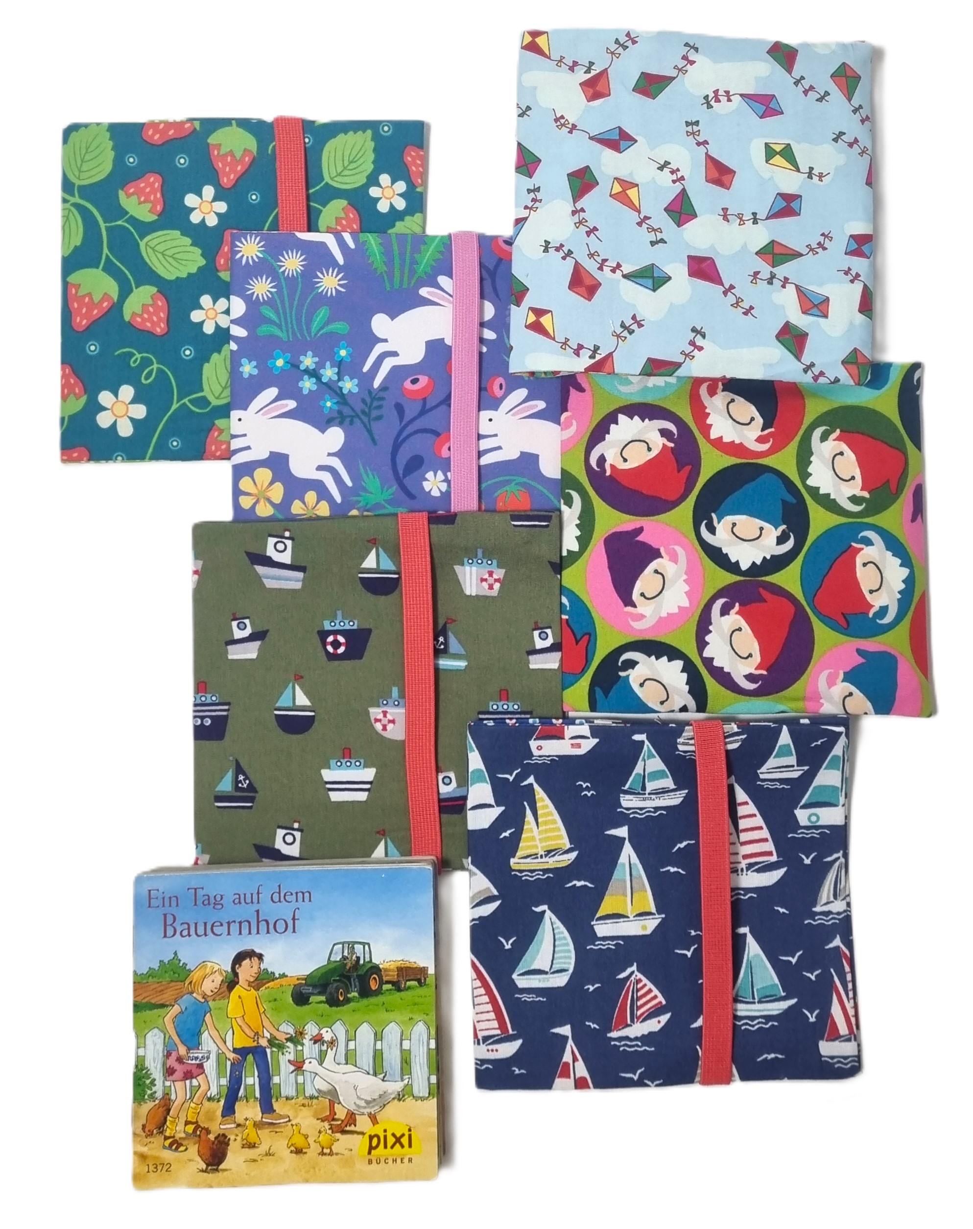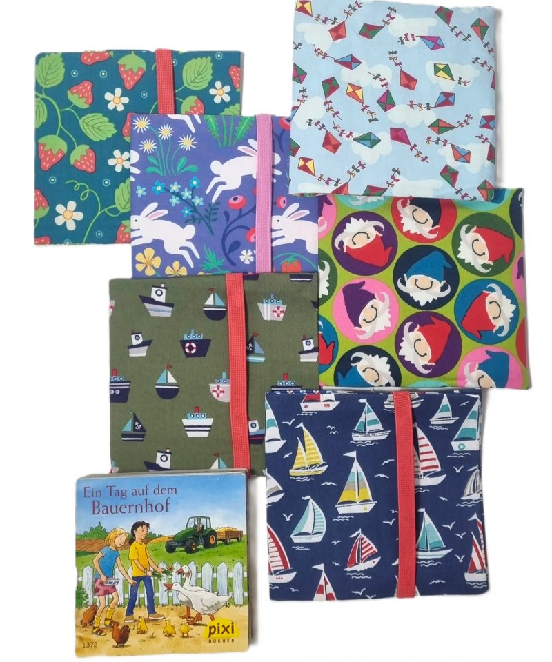 Pixibuchhülle – in das 13 x 13 cm große Mäppchen fasst locker 15 kleine Kinderbüchlein. Es ist praktisch diese Hülle mit der Unterhaltung für die Kleinen in der Handtasche dabei zu haben. Sie fliegen dann nicht rum und sind leicht zur Hand.